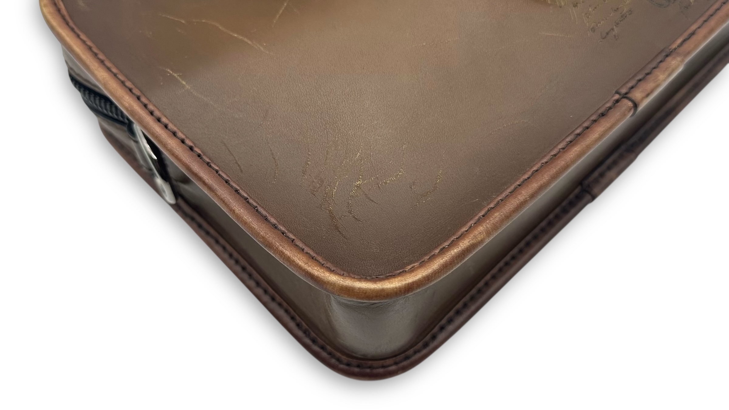 - お預かりしたベルルッティ アンジュールミニには、以下のような経年劣化が見られました。