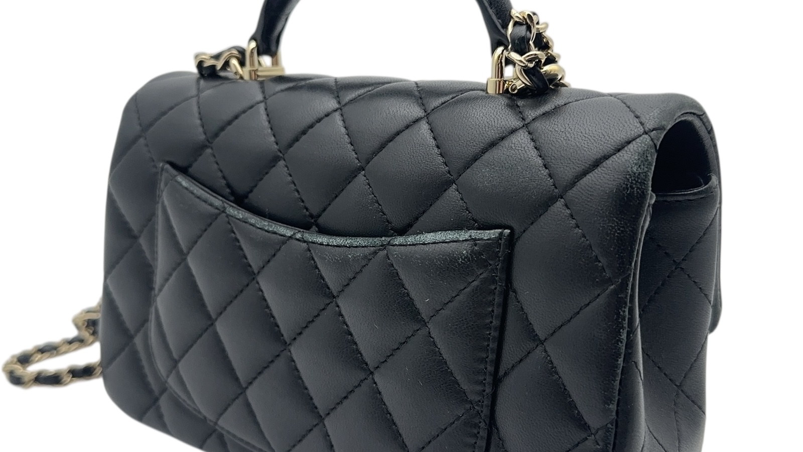 - 実際にお預かりしたシャネル トップハンドル(ラムスキン)には、以下のような経年劣化が見られました。