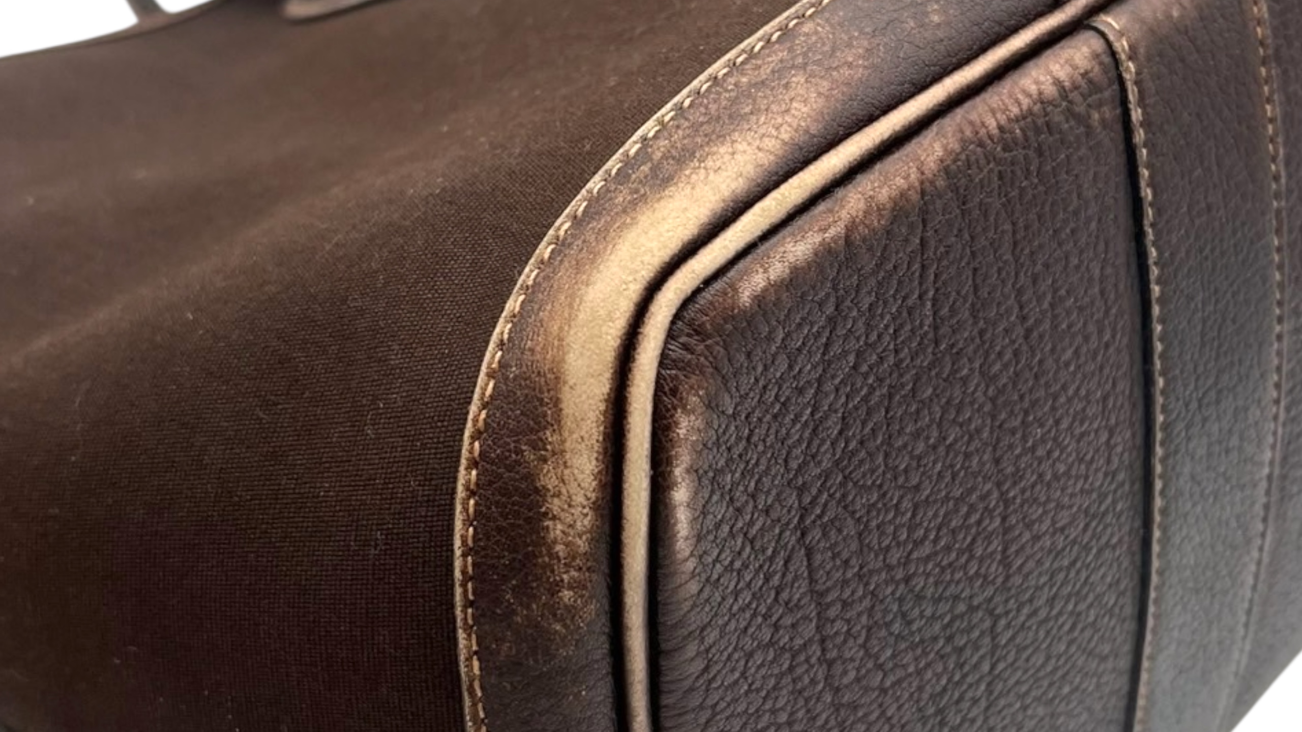 一方でキャンバス生地は、日常使用によって黒ずみ・シミ・黄ばみなどが蓄積しやすく、レザー部分も色褪せやスレが目立ちやすいのが特徴です。