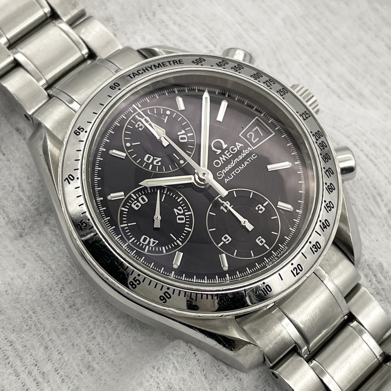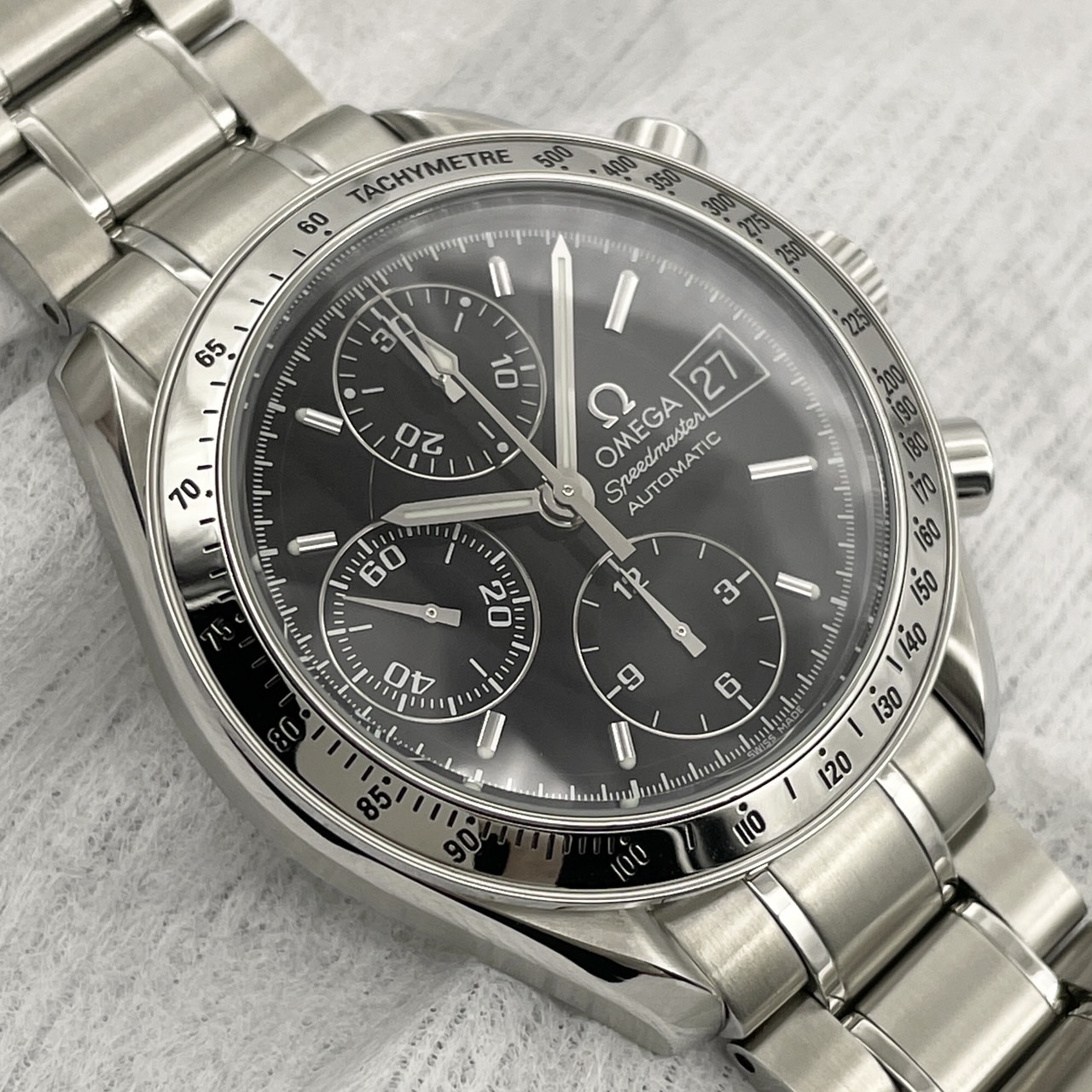 - オメガを代表するクロノグラフ「スピードマスター」。今回ご依頼いただいたのは、ステンレススチール製ケースとブレスレットが採用された定番モデルです。スポーティーでありながら高級感のあるデザインは、オンオフ問わず幅広いシーンで愛用され、多くのファンを魅了し続けています。